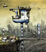 - 《机械迷城》是由捷克独立开发小组AmanitaDesign设计制作的一款AVG冒险游戏。游戏在2009年独立游戏节上获得了视觉艺术奖。游戏将采用传统点击式界面,和Samorost游戏相似,2D背景和人物,没有对白。Machinarium游戏时间将更长更复杂,游戏画面全部由手画。《机械迷城》中每个人都是机器人,包括我们的小英雄,他将对从"Black Cap Brotherhood"来的坏人。