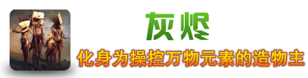 - 《灰烬》这款游戏大体上是描述一个过去能够操控万物元素、与自然取得平衡的部族,如今这个能力却失传了,而族人也陷入生死存亡的关头,因此他们需要寻求神的力量来改变这一切,而玩家扮演的,就是《灰烬》里的造物主,负起维系生命的任务。游戏中,玩家扮演部落中的神灵,引领着部落土著抵御外侮。而敌人将不是任何怪物或是其他部落的人民,玩家将抵抗的是大自然反扑的力量,使用自己的力量来保护他们免于灾难。
